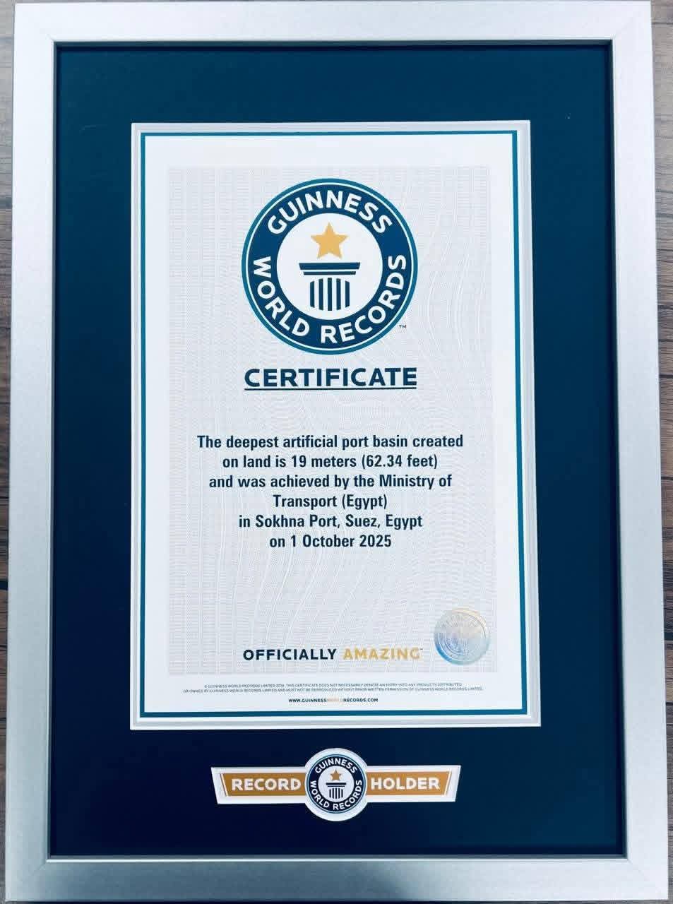 মাননীয় মন্ত্রী মহোদয় তাঁর সংক্ষিপ্ত বক্তব্যে বলেনঃআজকের এই বিশ্ব রেকর্ড মিশরের বন্দরগুলির জন্য এটি একটি বিরল আন্তর্জাতিক অর্জন। যা স্থলভাগে সবচেয়ে গভীরতম মানবসৃষ্ট বন্দর অববাহিকা হিসেবে স্বীকৃতি পেলো, যার গভীরতা ১৭ মিটার থেকে ১৯ মিটারে উন্নীত করা হয়েছে।