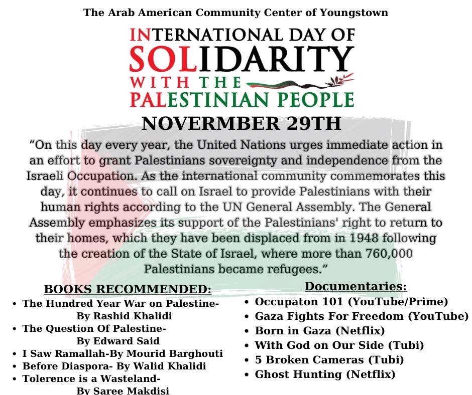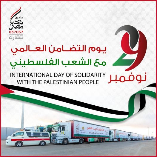 মিশর ২৯ নভেম্বর ফিলিস্তিনি জনগণের সাথে আন্তর্জাতিক সংহতি দিবস পালন করেছে। দিবসটি এই বছর ফিলিস্তিনিদের বিরুদ্ধে প্রায় ৫০ দিনের নির্মম ইসরায়েলি আগ্রাসনে আরও প্রতিপাদ্য হয়েছে।